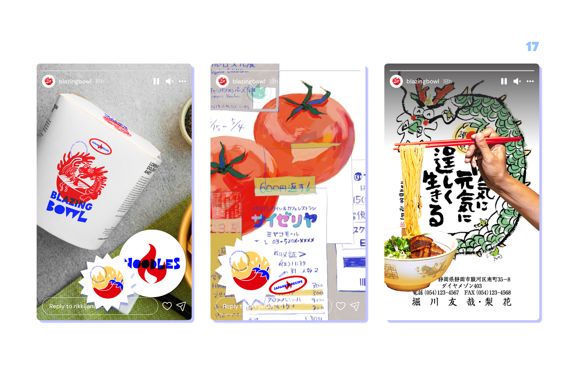 We gave fire a visual identity. Bold colors, scorched textures, and myth-inspired characters built to match the heat. A full branding system for a fictional ramen joint that bites back.