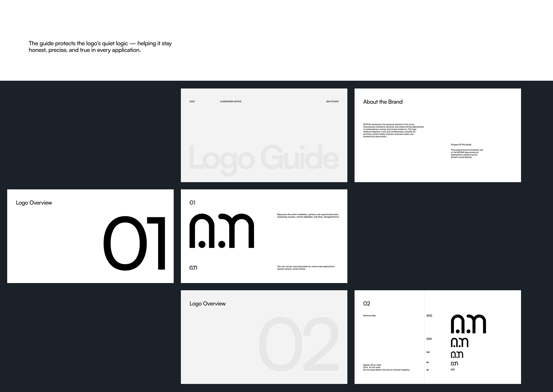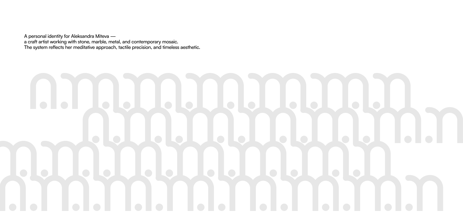 A visual identity shaped by rhythm, material, and quiet intention. Created for craft artist Aleksandra Miteva, whose practice blends mosaic, stone, and meditative making. This project explores how meaning can lead form — from the first impression to the final symbol.